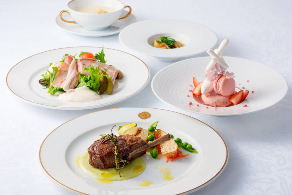 鰆のポワレ ヴァンブランソース アンチョビ風味の春野菜添え