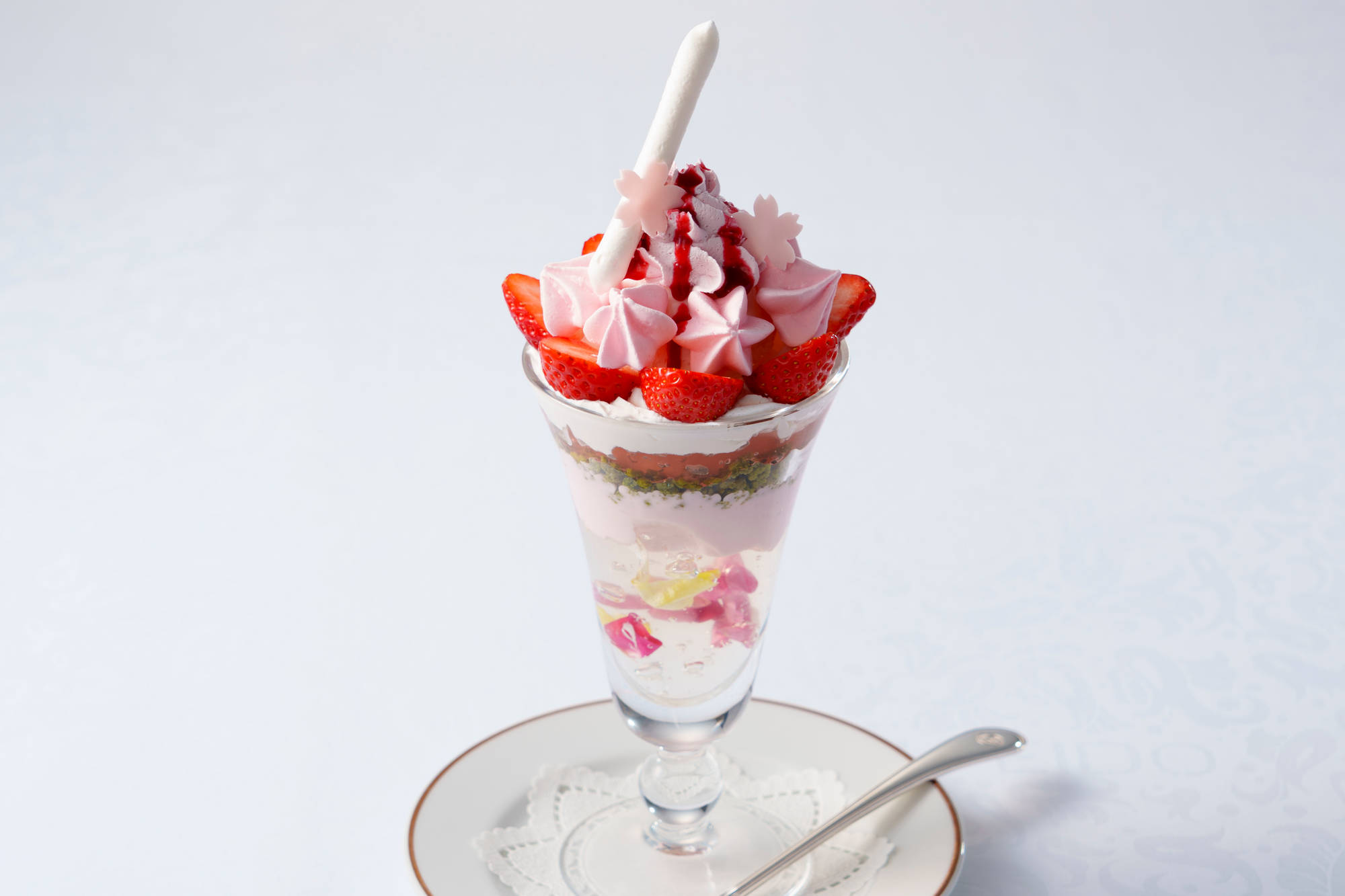 季節のパフェ(3月)桜と香川県産苺“さぬきひめ”のパフェ