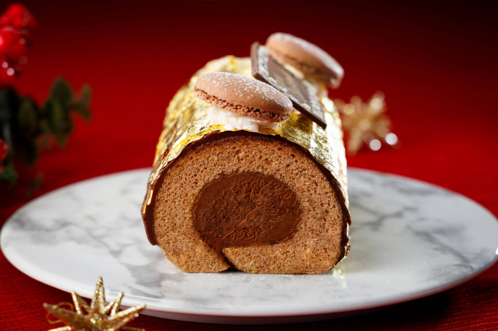 チョコレートの名門・カレボー製のカカオ分70%のチョコレートクリームをふんわりとしたスポンジで丁寧に巻いた、ビターな味わいが大人のクリスマスケーキ。