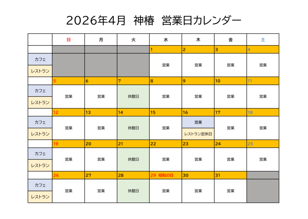 2026年4月は下記の通り営業いたします。